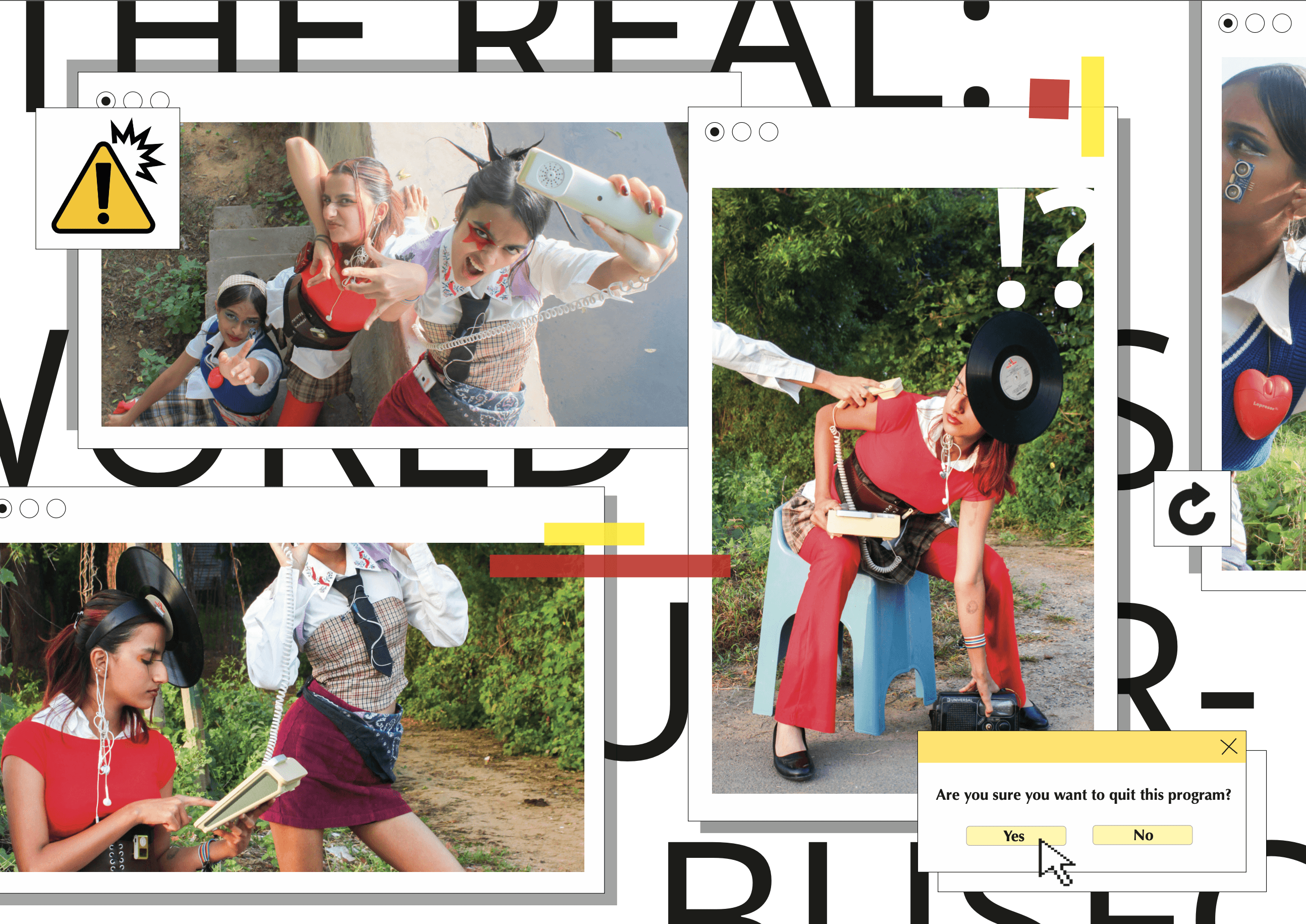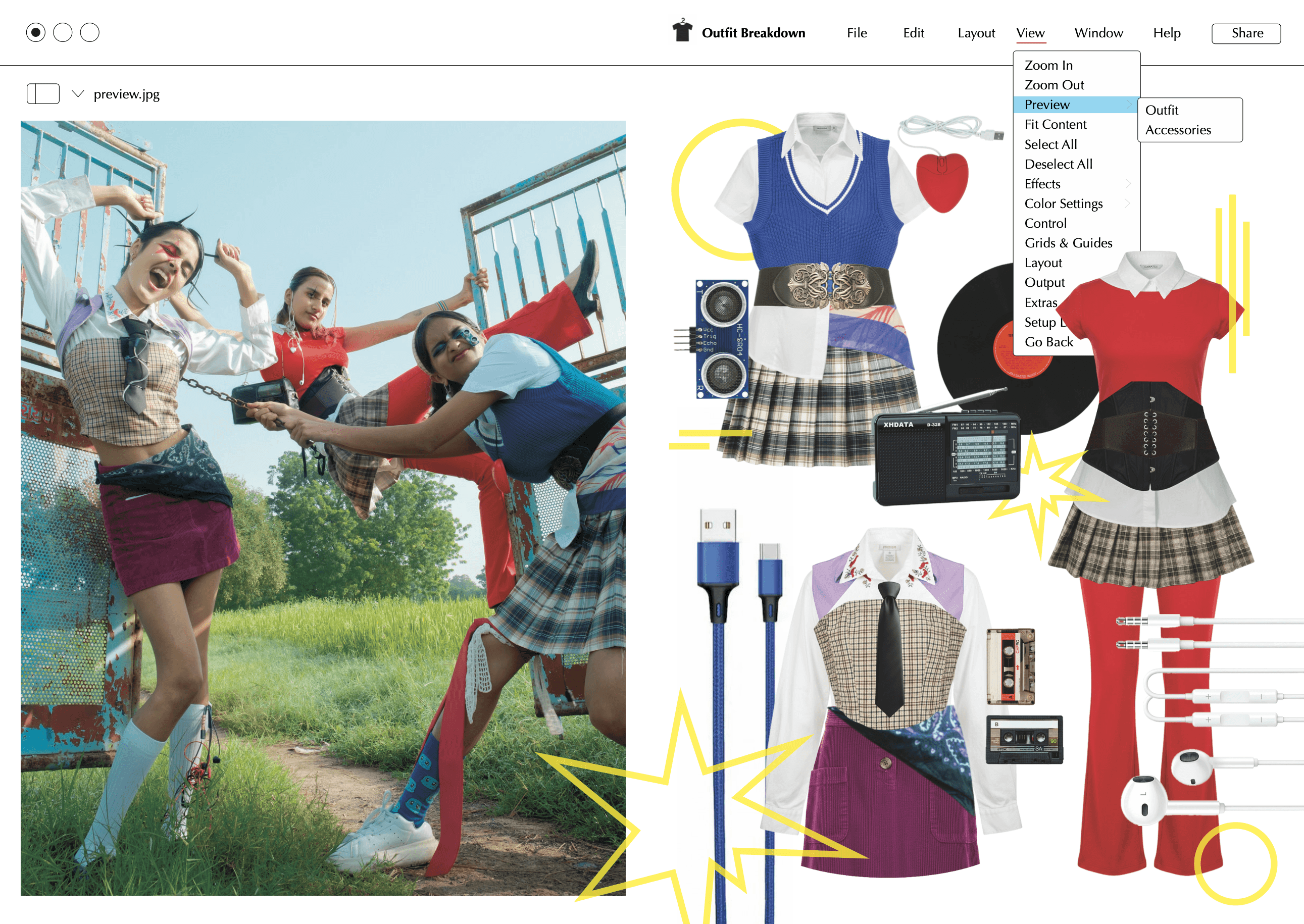 Based on the Digital Buffet concept, we styled three outfits that explore different expressions of digital consumption. The looks were photographed in natural landscapes, where electronic props were treated as consumable objects or extensions of the body. The visuals were compiled into a magazine and accompanied by a fashion film, together creating a cohesive narrative on the excess and instinctive nature of media consumption in everyday life.