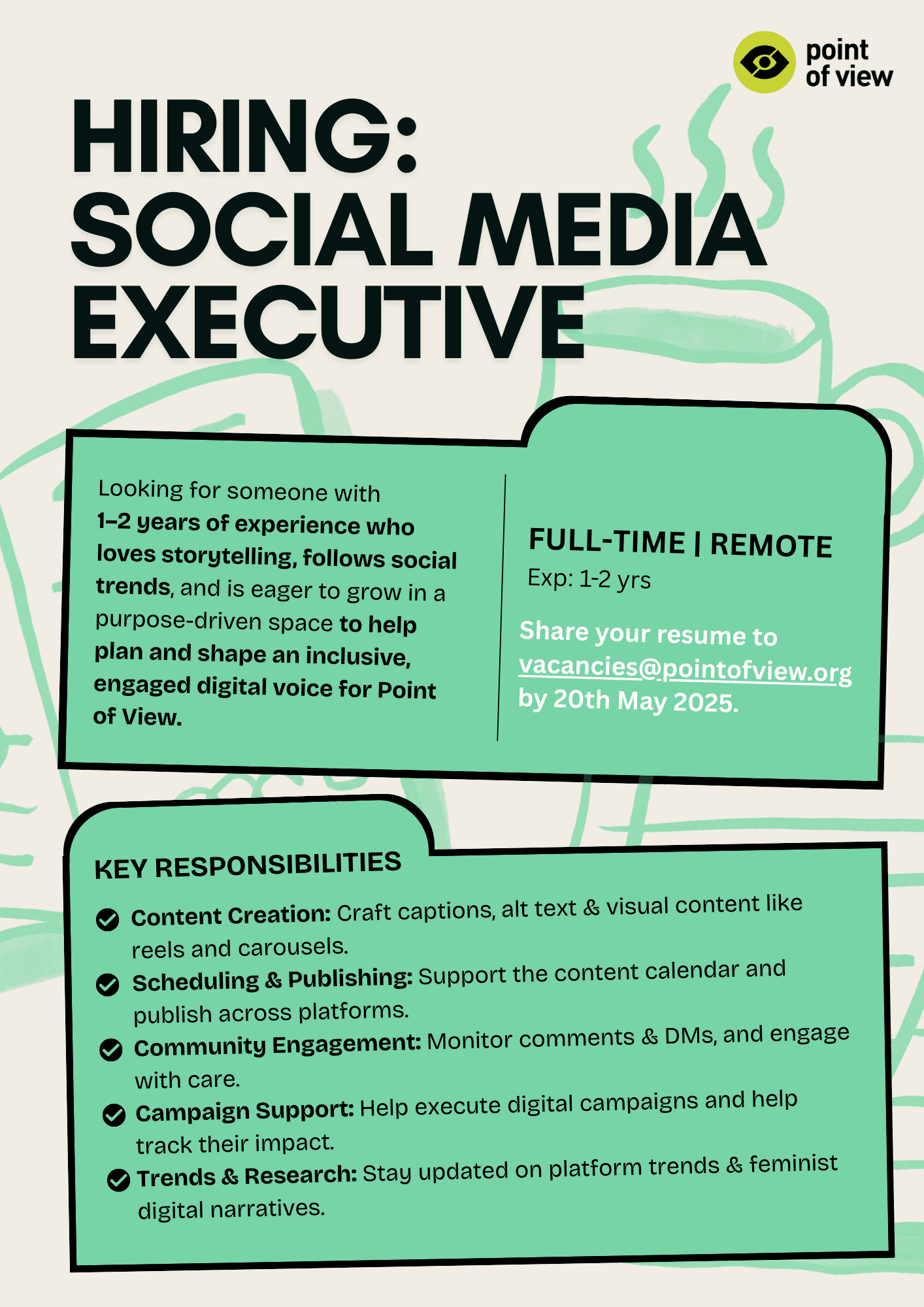 Supported POV’s communication and design initiatives by creating social media posts, event posters for a book launch, postcards for the Jhoothbusters game, and creatives for FemTech projects. Also contributed to policy documents and developed illustrations to visually communicate complex ideas. Gained experience in designing for social impact and creating accessible, engaging content across formats.
