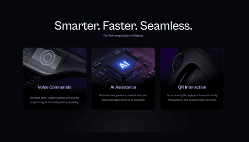 This was a commissioned client project for an existing crypto-native smart glasses product. We focused solely on designing the website and companion app, translating Solana Glasses’ core features—payments, DeFi access, QR interactions, voice commands, and on-chain actions—into a clear, intuitive, and visually refined digital experience.